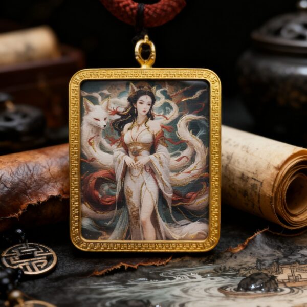 Hand-painted Thangka card of a Nine-Tailed Fox